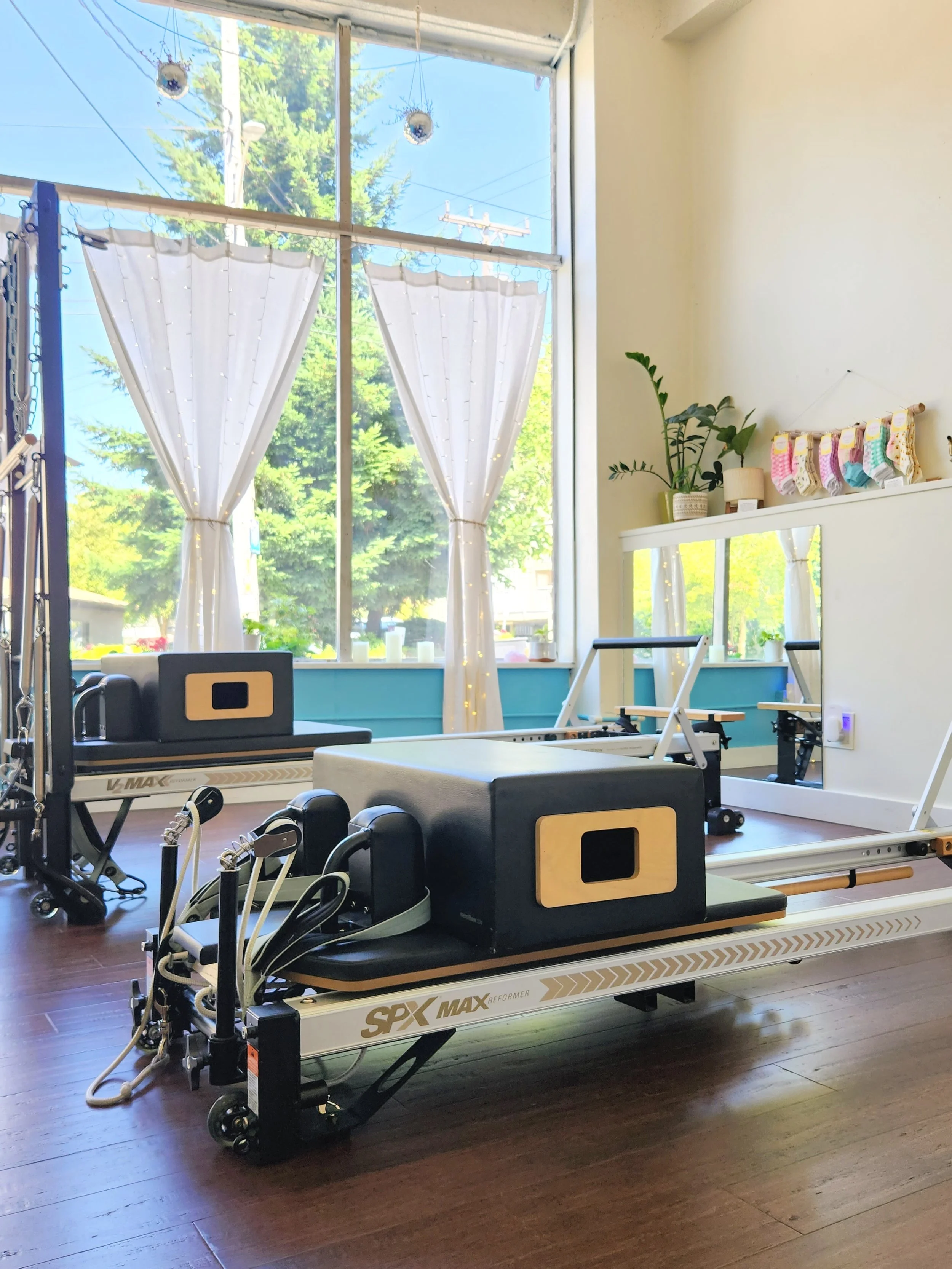 Through group reformer and mat Pilates classes of up to 5 people, individual private and duet sessions, Reiki energy healing, and curated community events, we offer a safe and uplifting community space for all to feel cozy in.